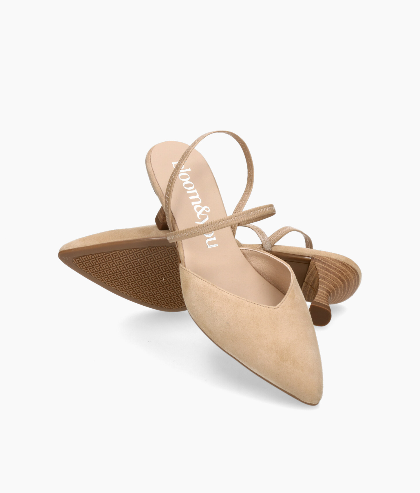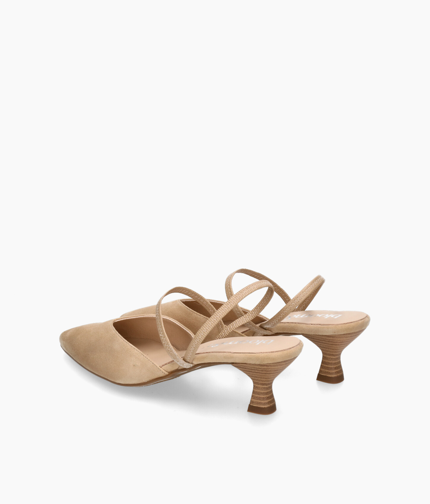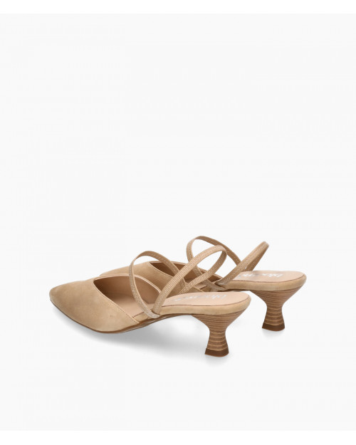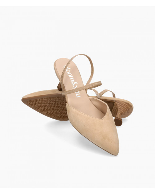 • Court shoe made of soft camel-colored suede.