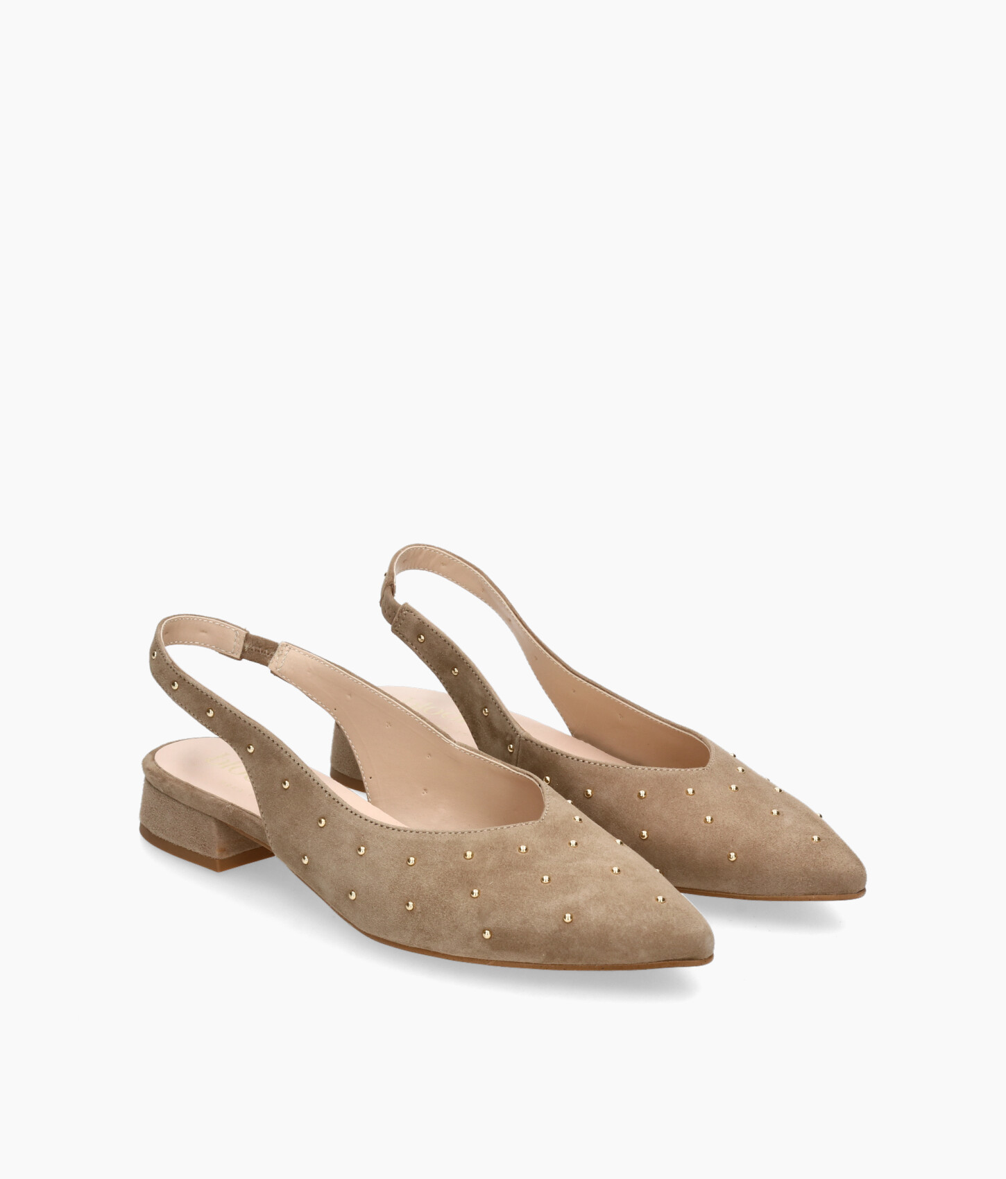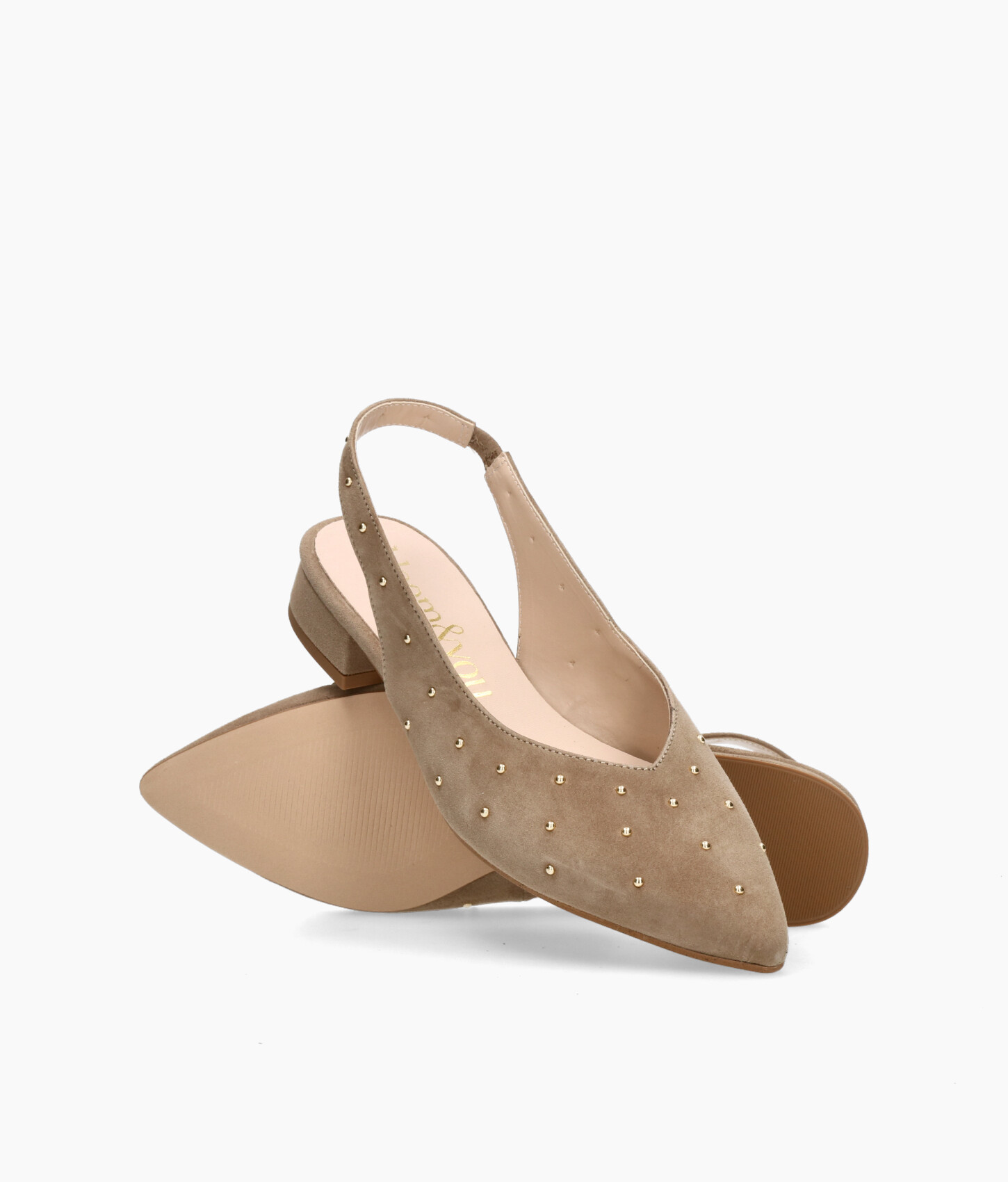 • Slingback pumps made of soft taupe suede.