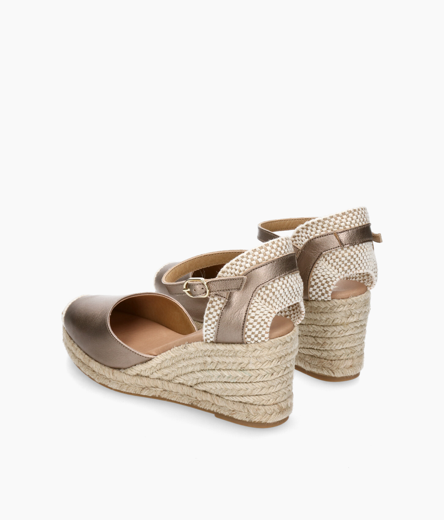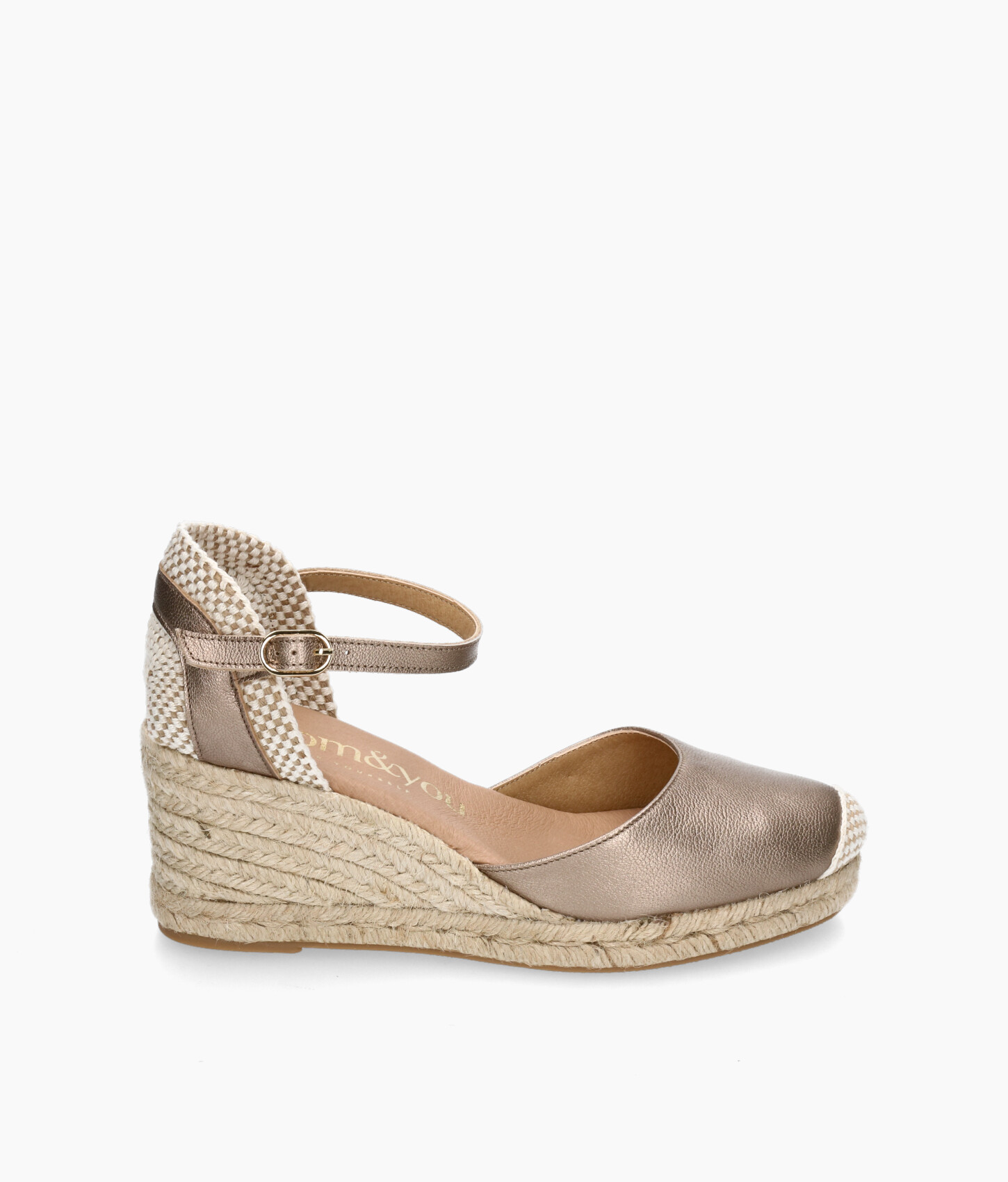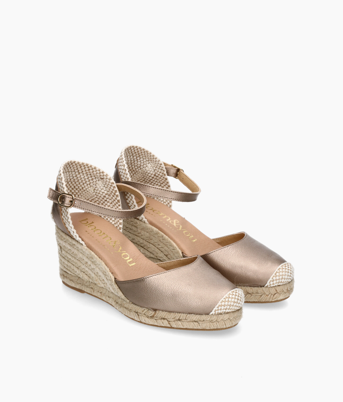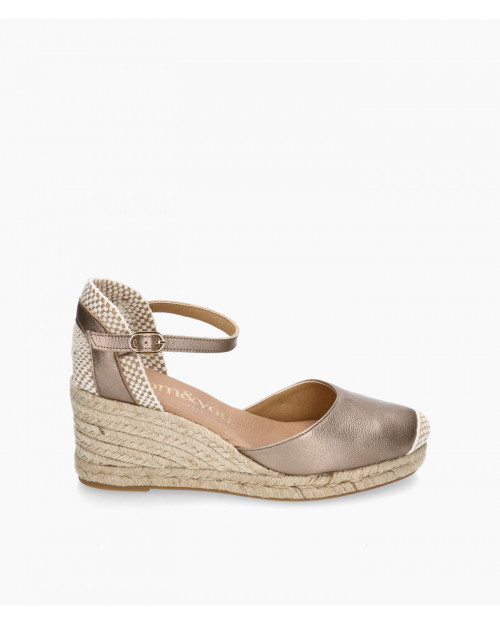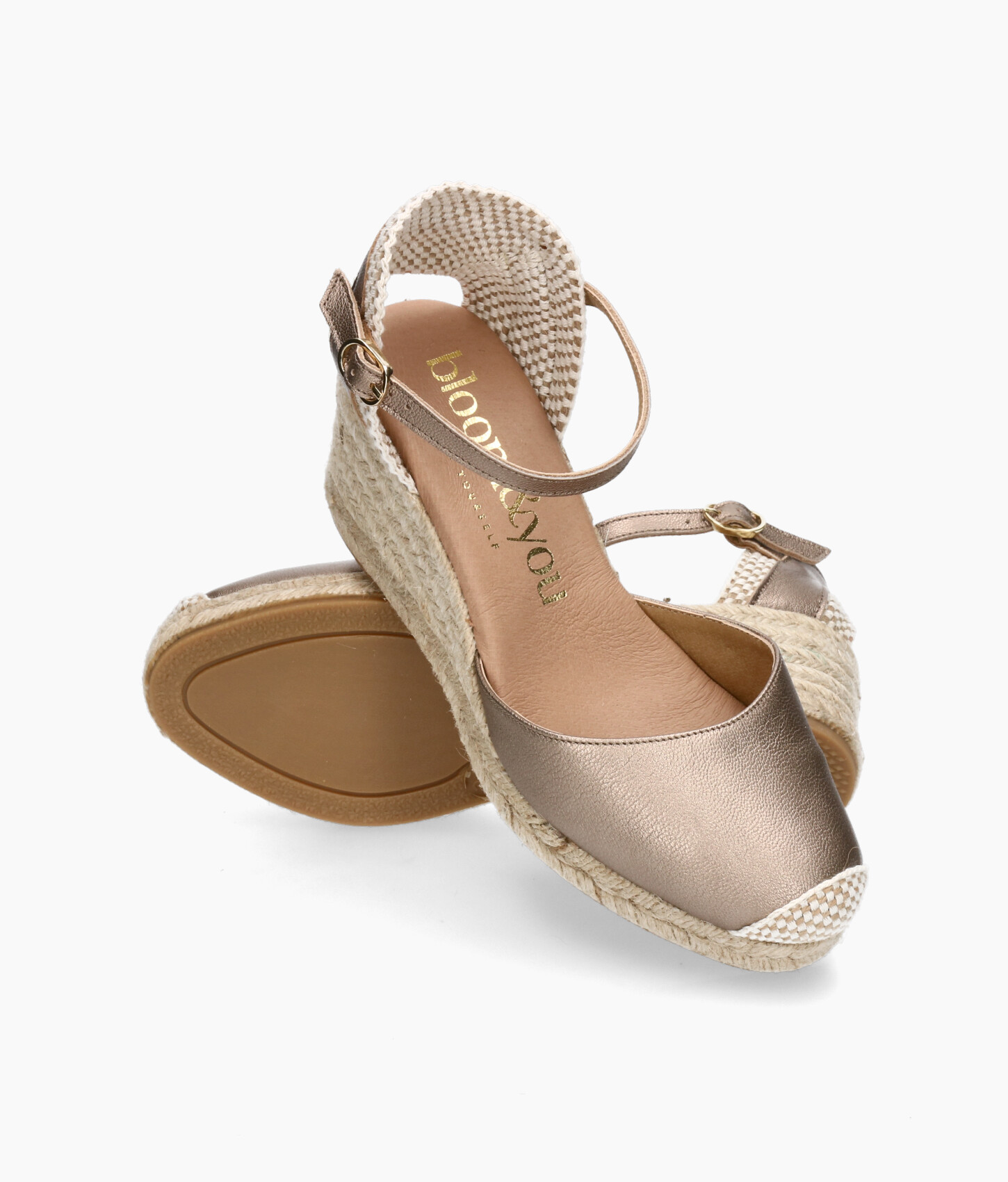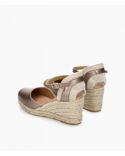 • Refuerzo de rafia en la puntera y pieza de piel beige en la parte trasera.