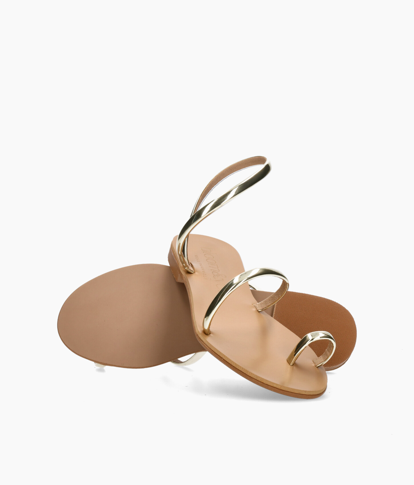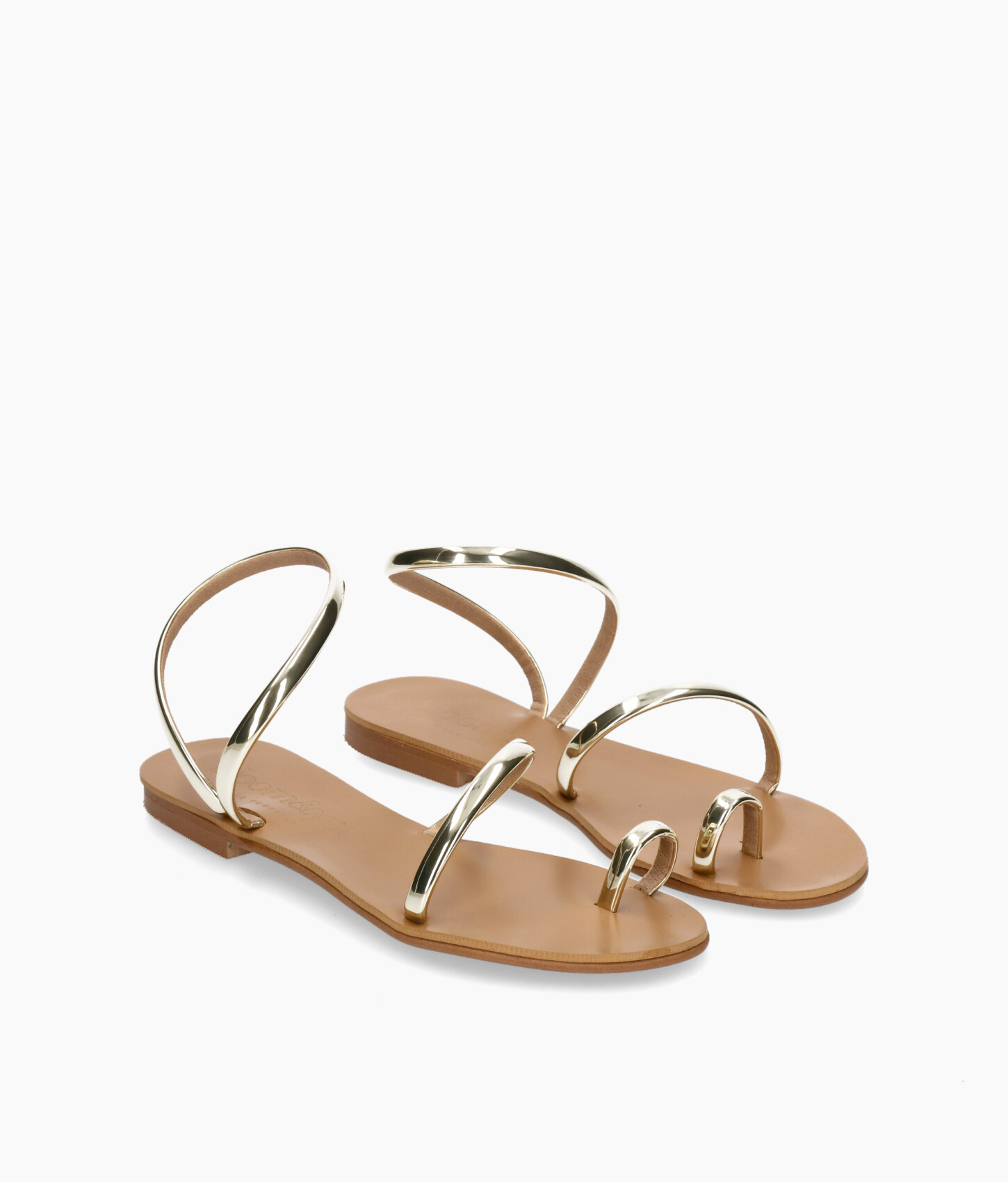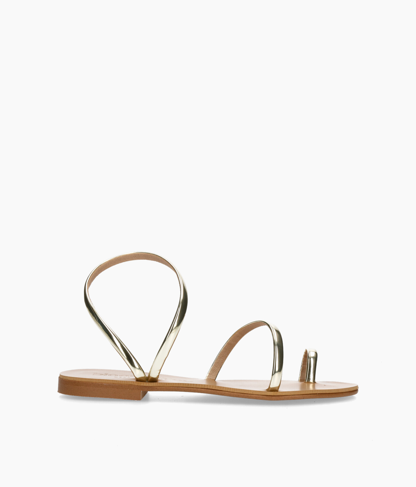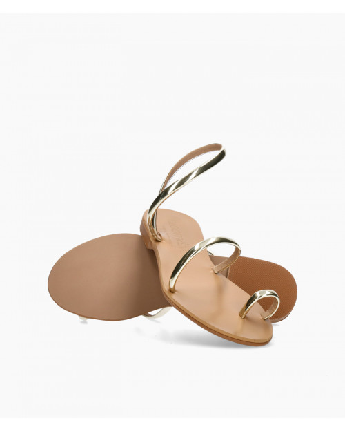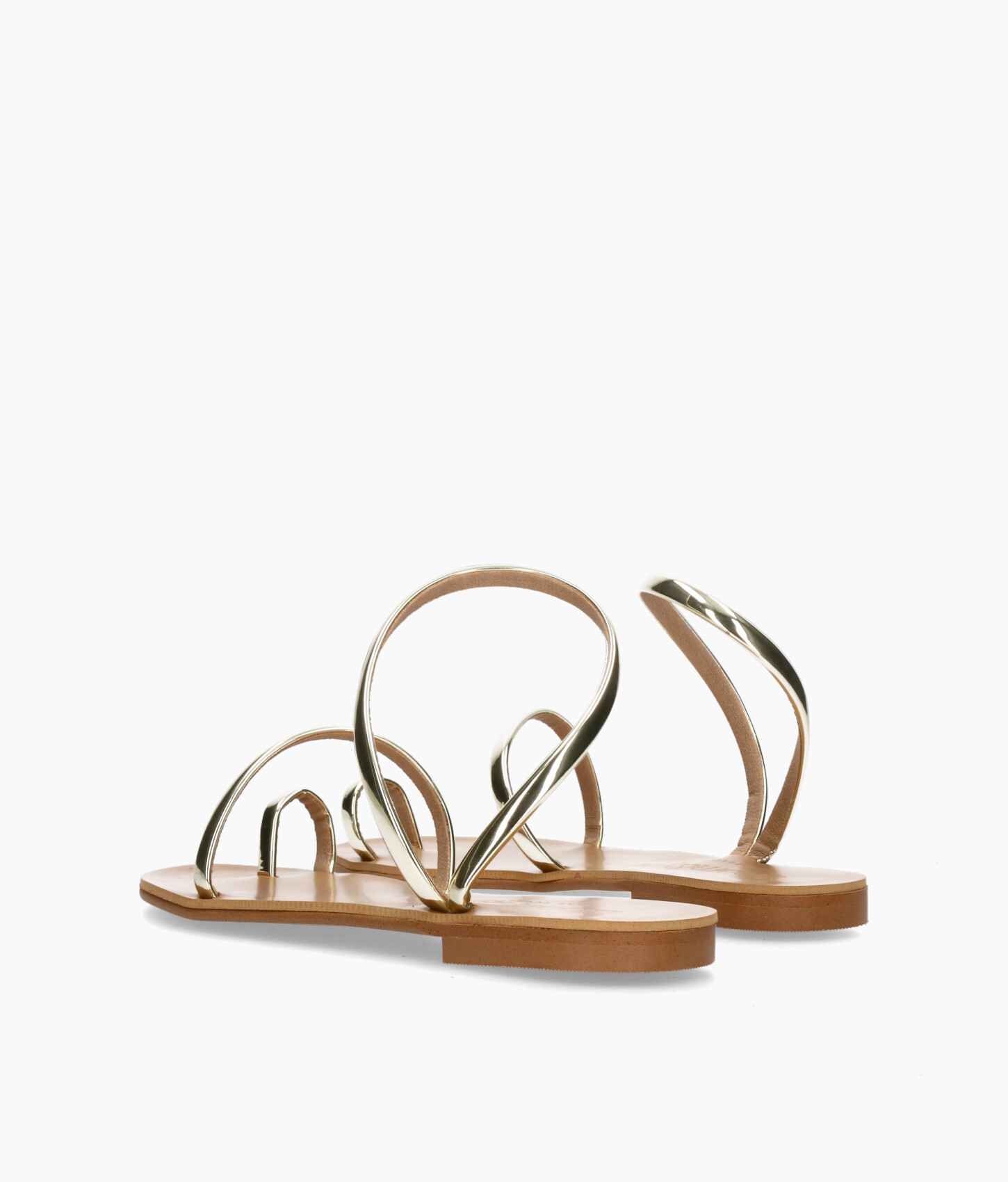 • Sandalias planas de tiras de piel vegana metalizada.
