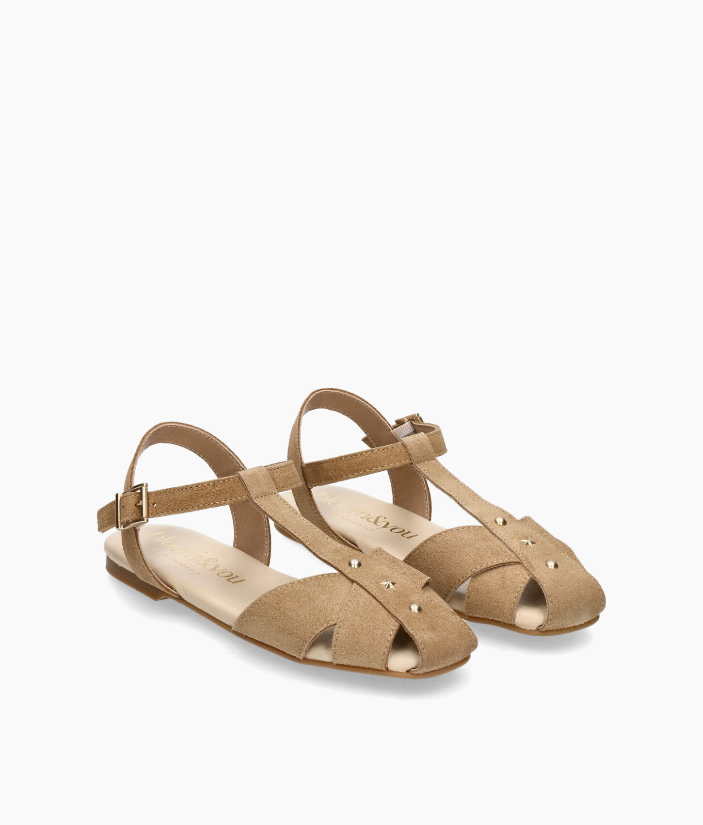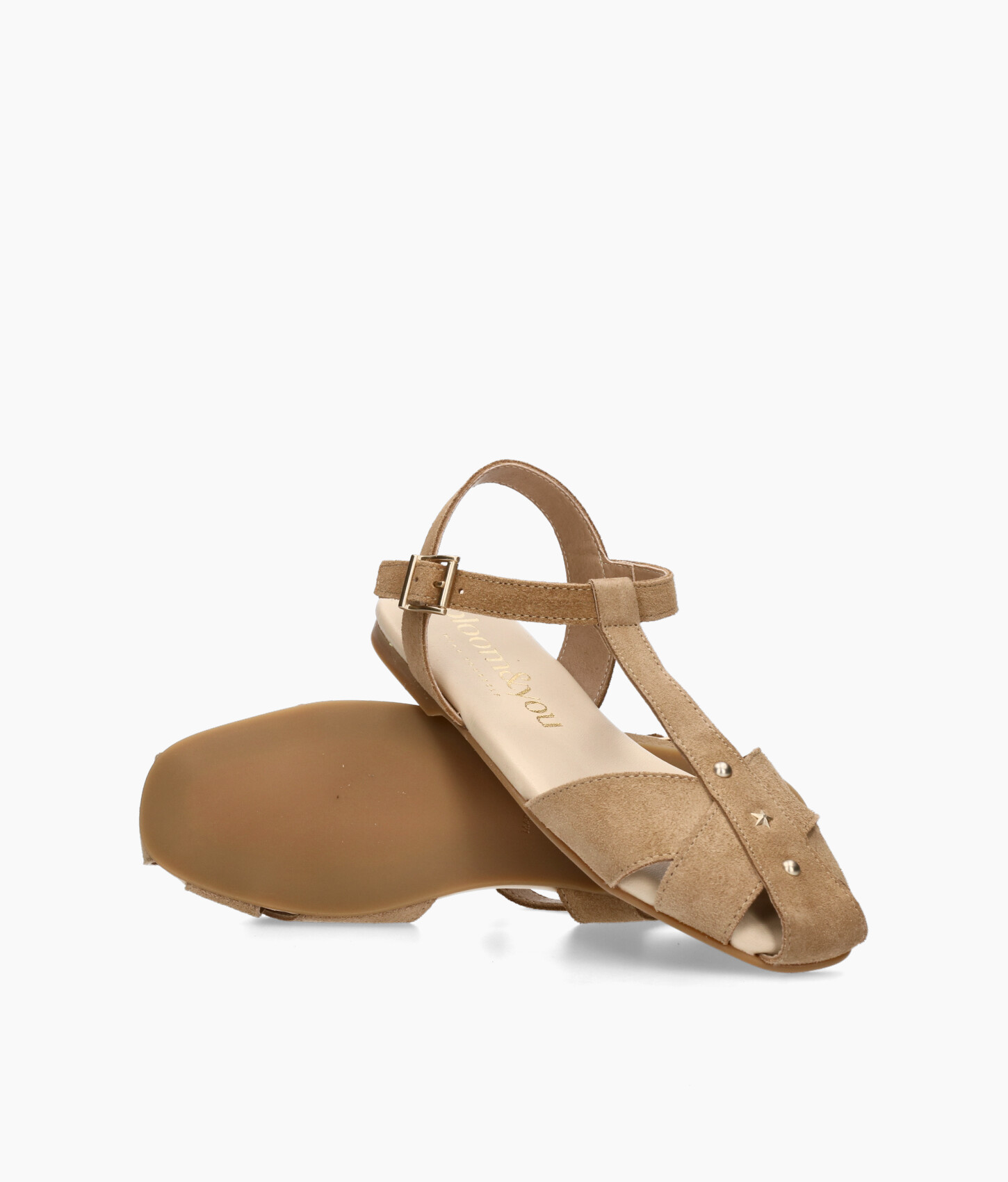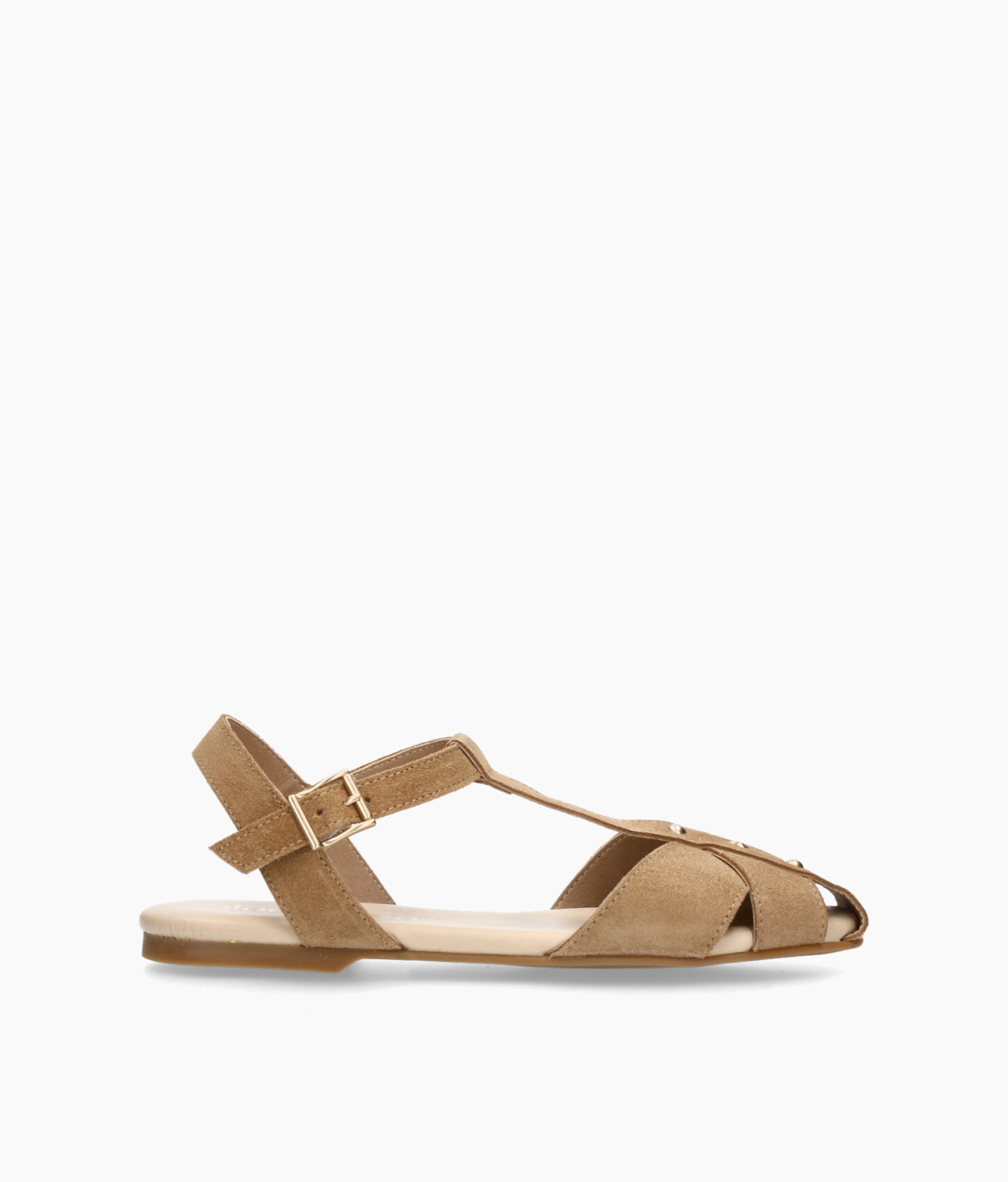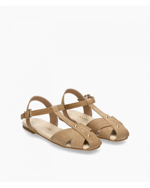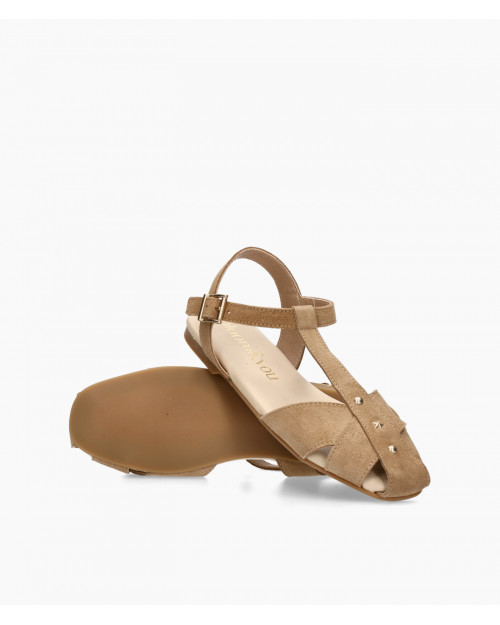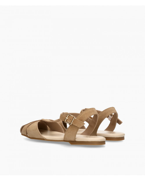 • Zapatos estilo cangrejera fabricado en suave serraje taupe.