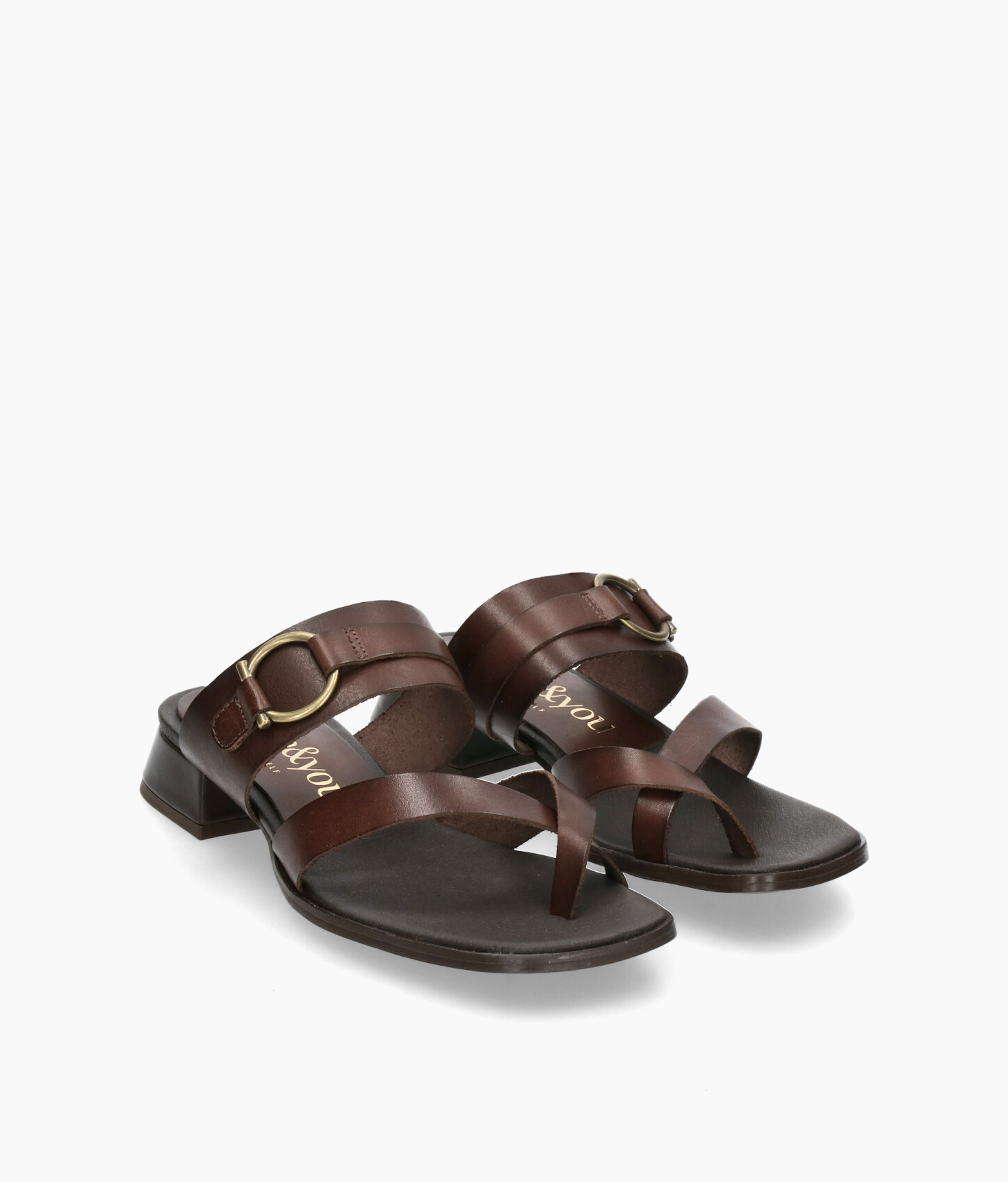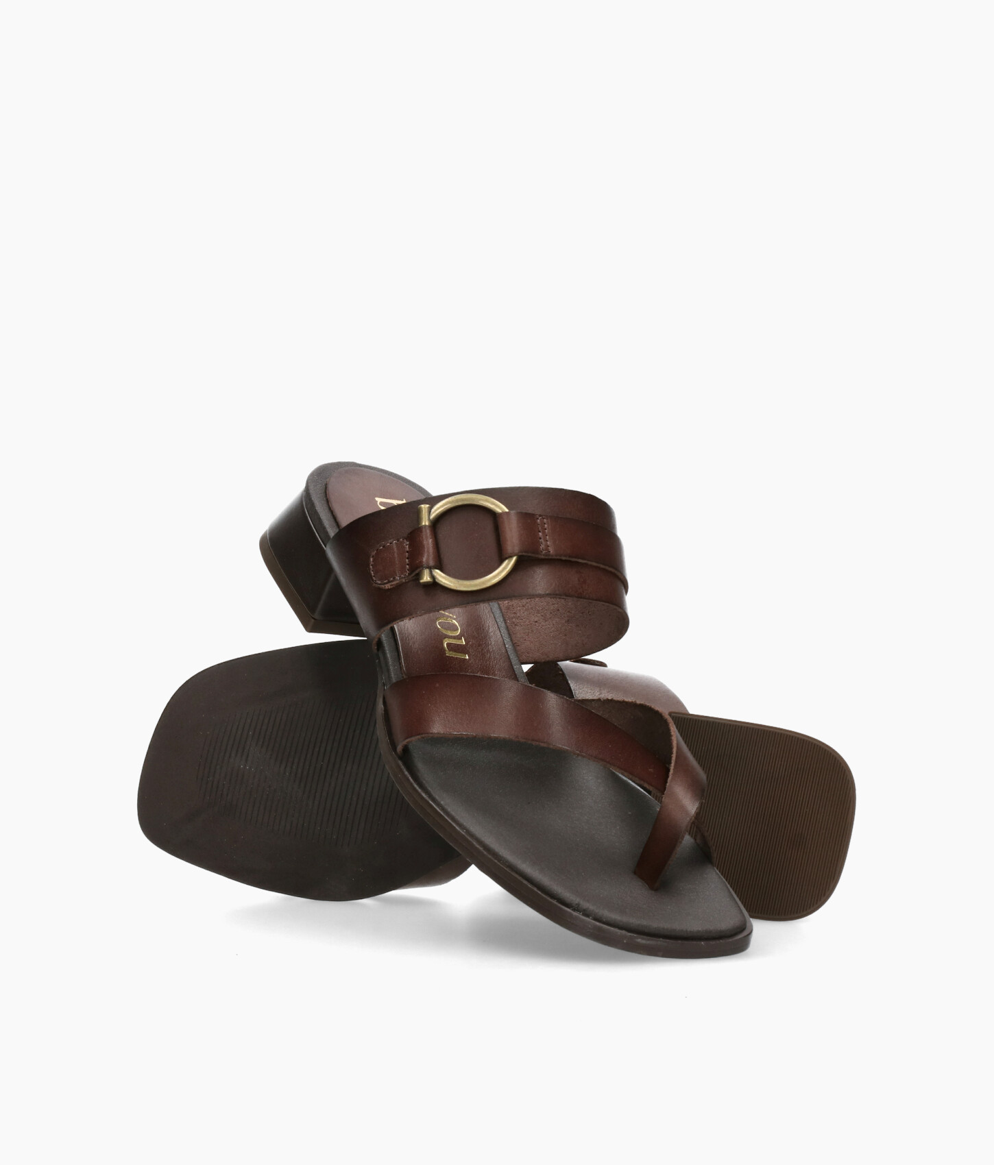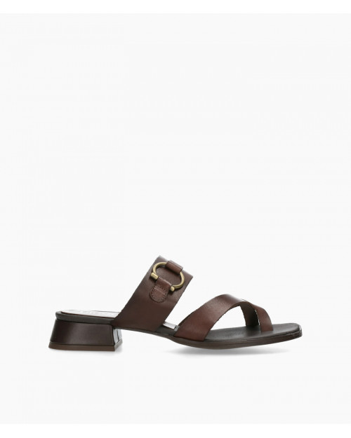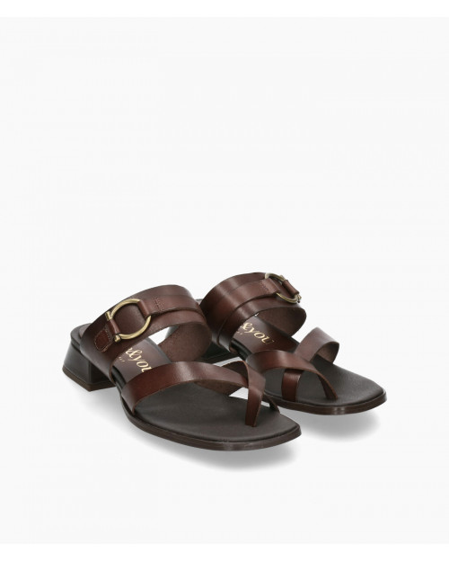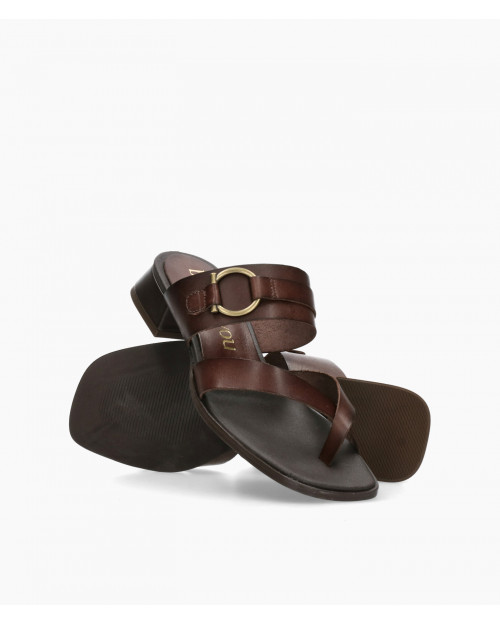• Sandalia fabricada en suave piel marrón.