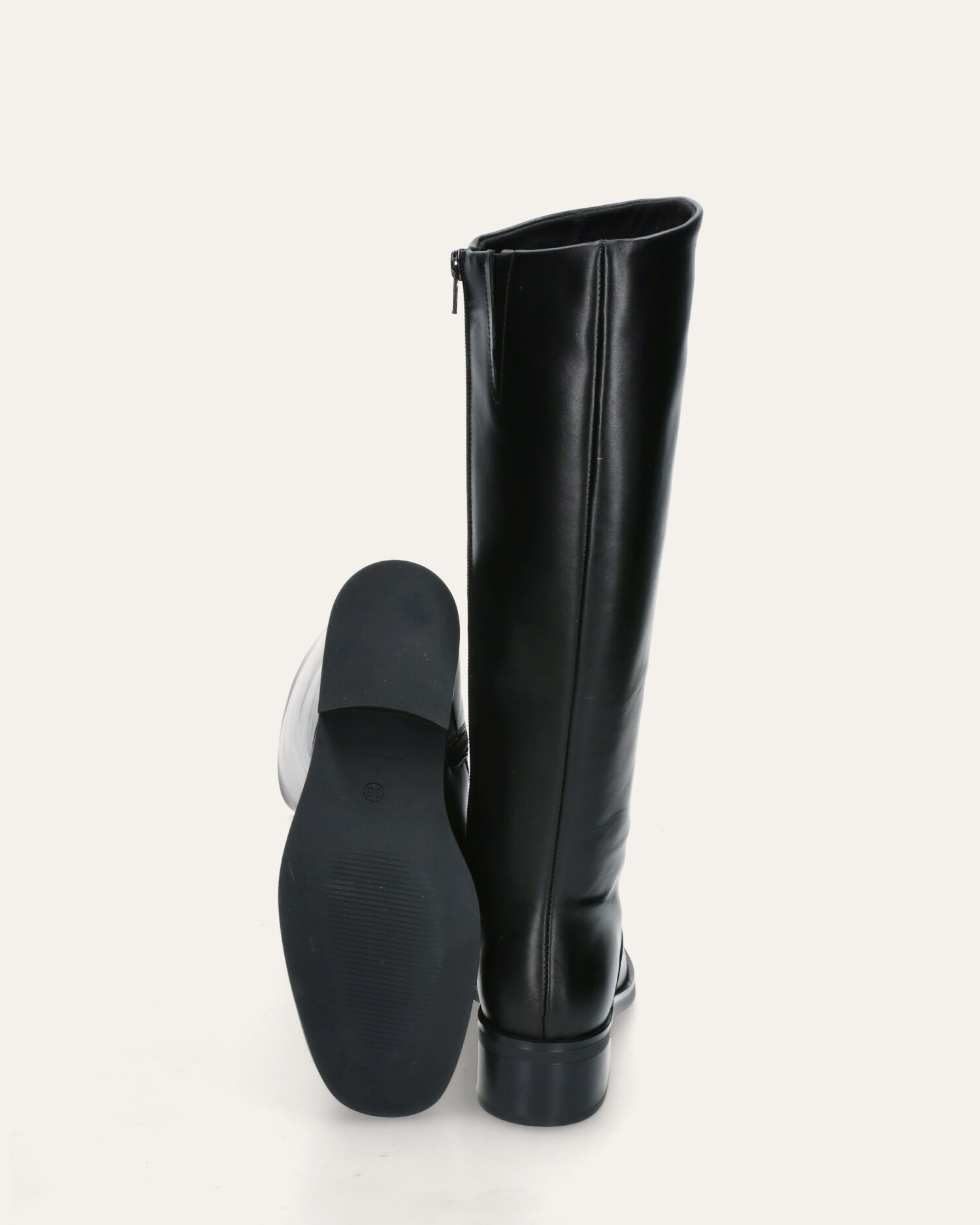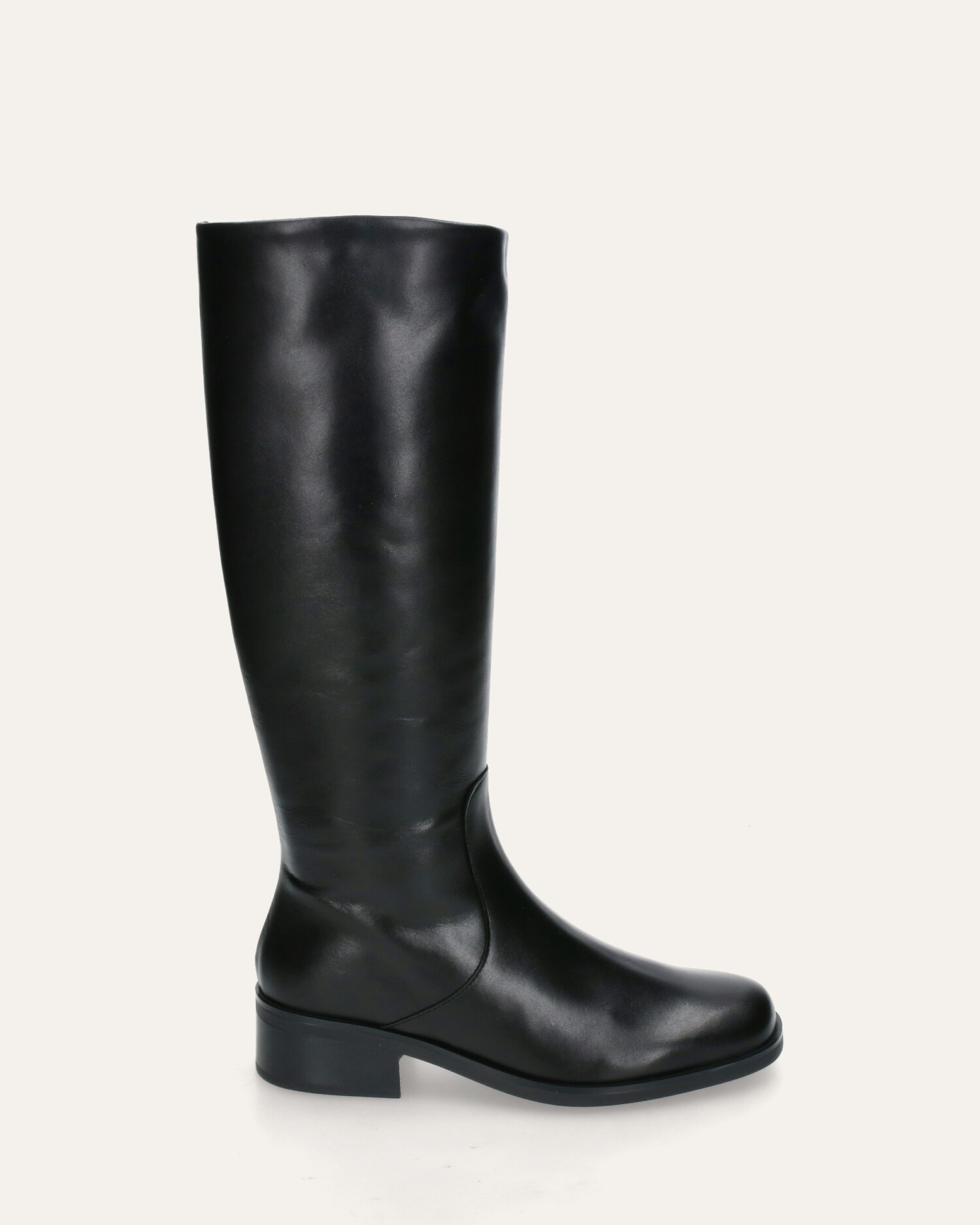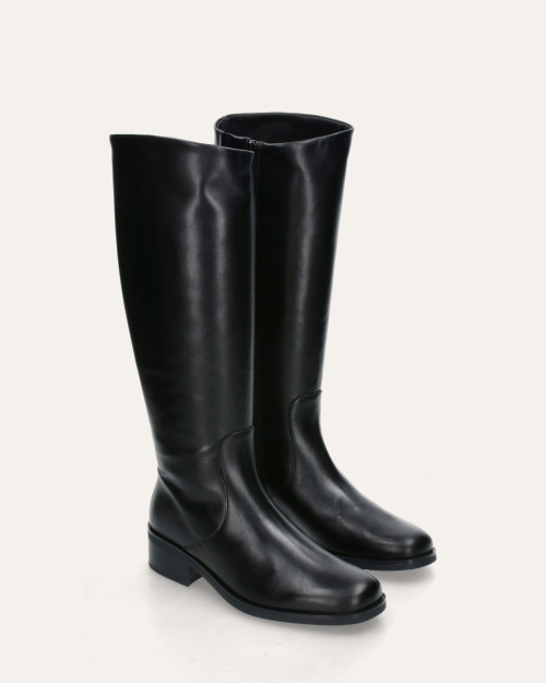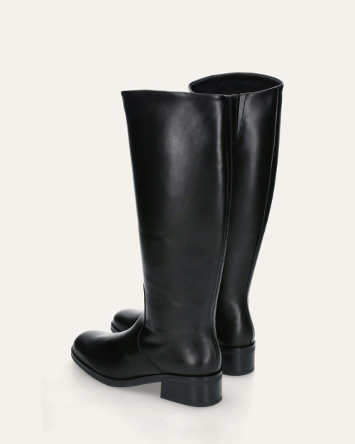 • Bota alta estilo hípica fabricada en piel negra.